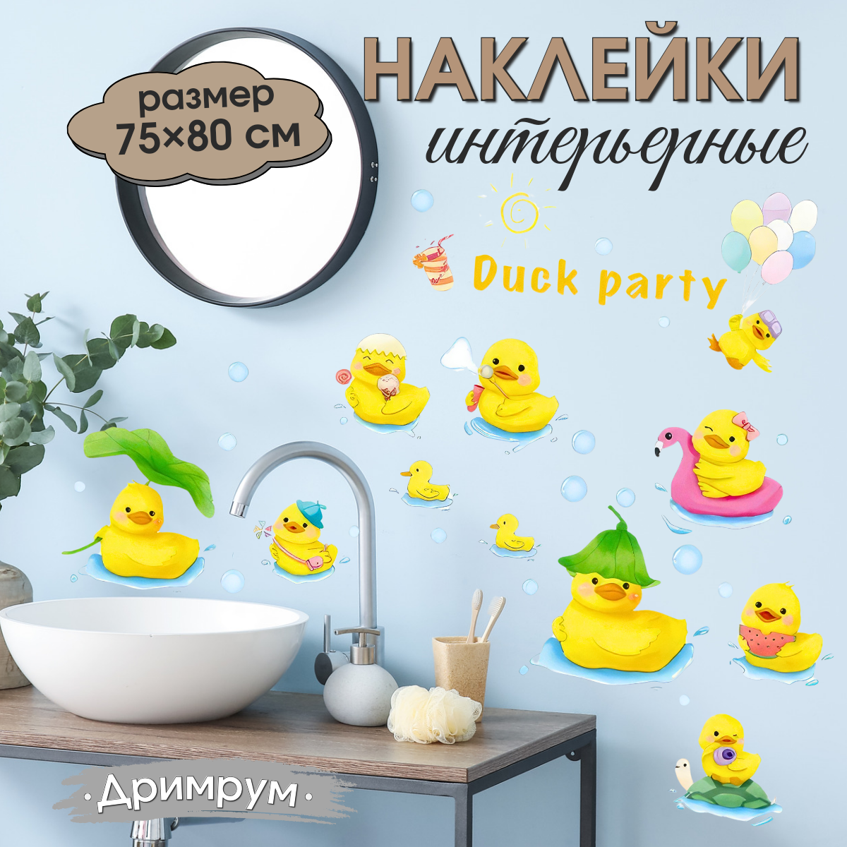 Наклейка для ванной комнаты на стену для интерьера для детей Уточки 1