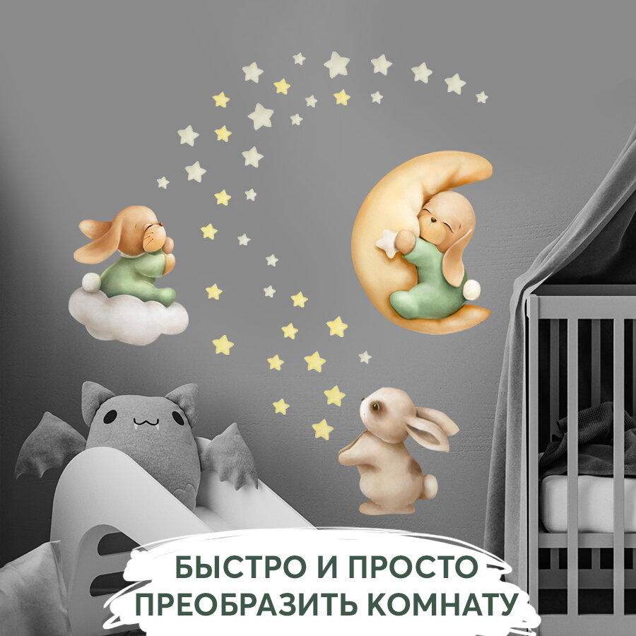 Декоративные интерьерные наклейки детские на стену в комнату - Спящие животные, зайчик, собачка интересное: