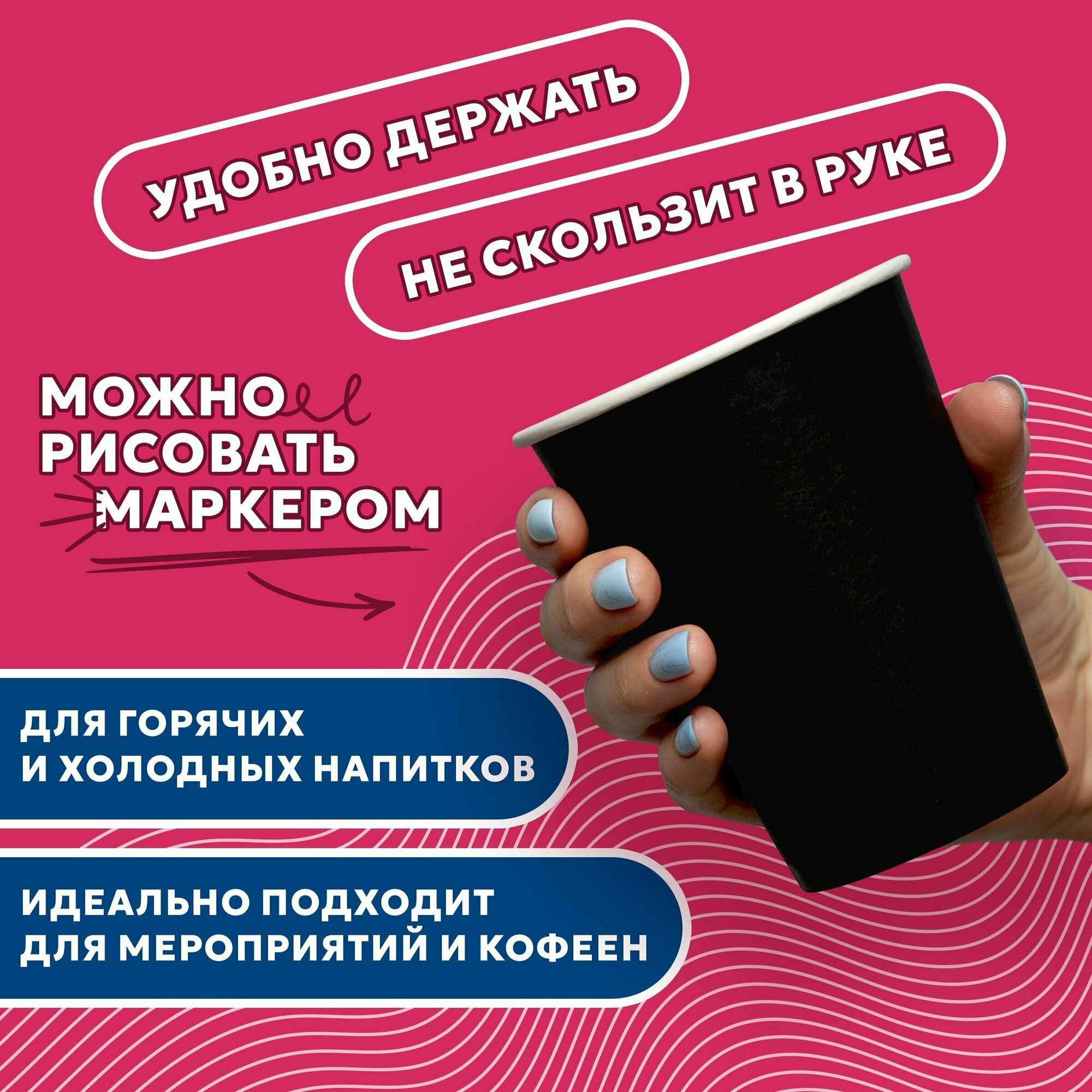 СохранитьНабор одноразовых стаканов гриникс, объем 350 мл 50 шт. черные, бумажные, однослойные, для кофе, чая, холодных и горячих напитков интересное: