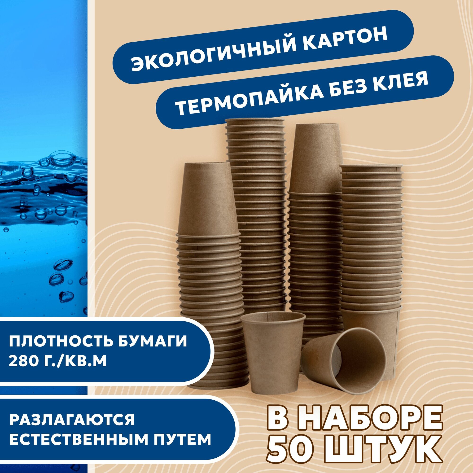 Набор одноразовых стаканов гриникс, объем 350 мл 50 шт. крафт, бумажные, однослойные, для кофе, чая, холодных и горячих напитков