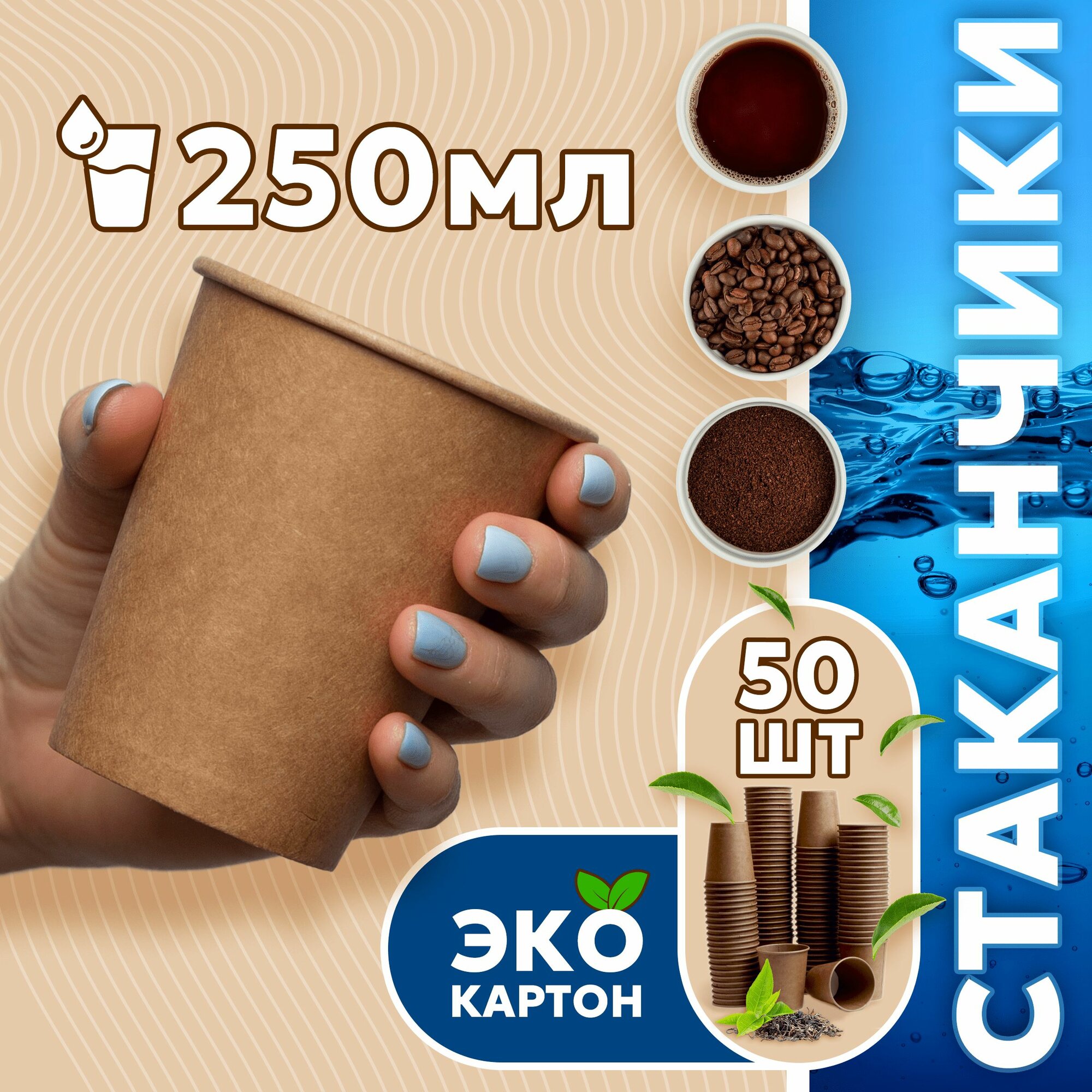СохранитьНабор одноразовых стаканов гриникс, объем 250 мл 50 шт. крафт, бумажные, однослойные, для кофе, чая, холодных и горячих напитков интересное: