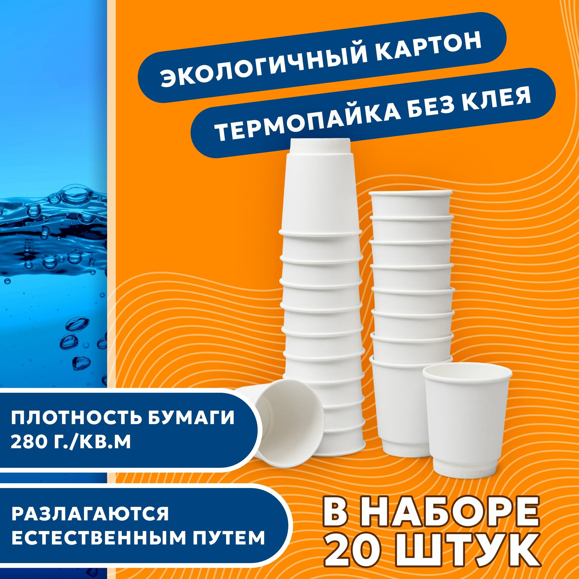 Набор одноразовых стаканов гриникс, объем 350 мл 20 шт. белые, бумажные, двухслойные, для кофе, чая, холодных и горячих напитков