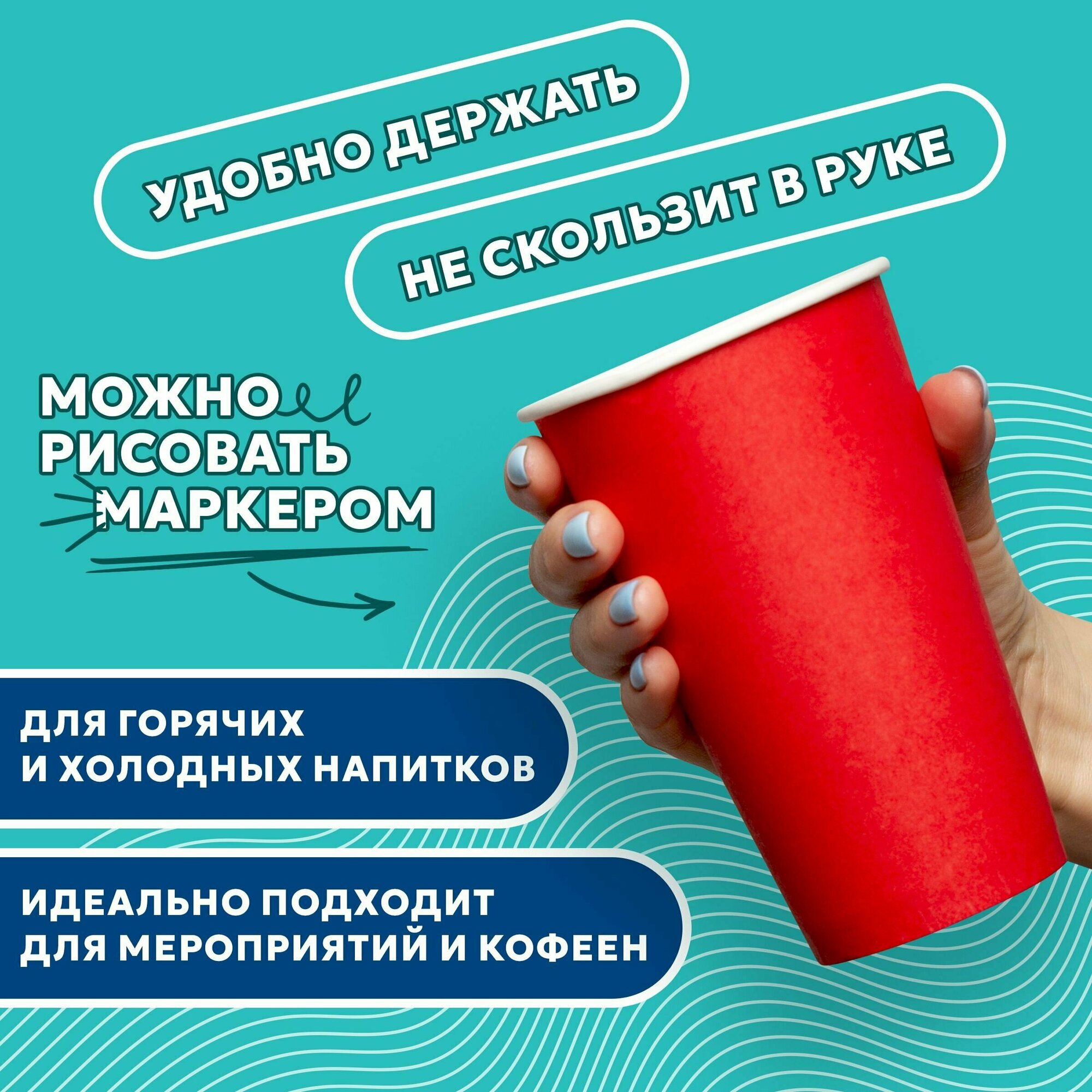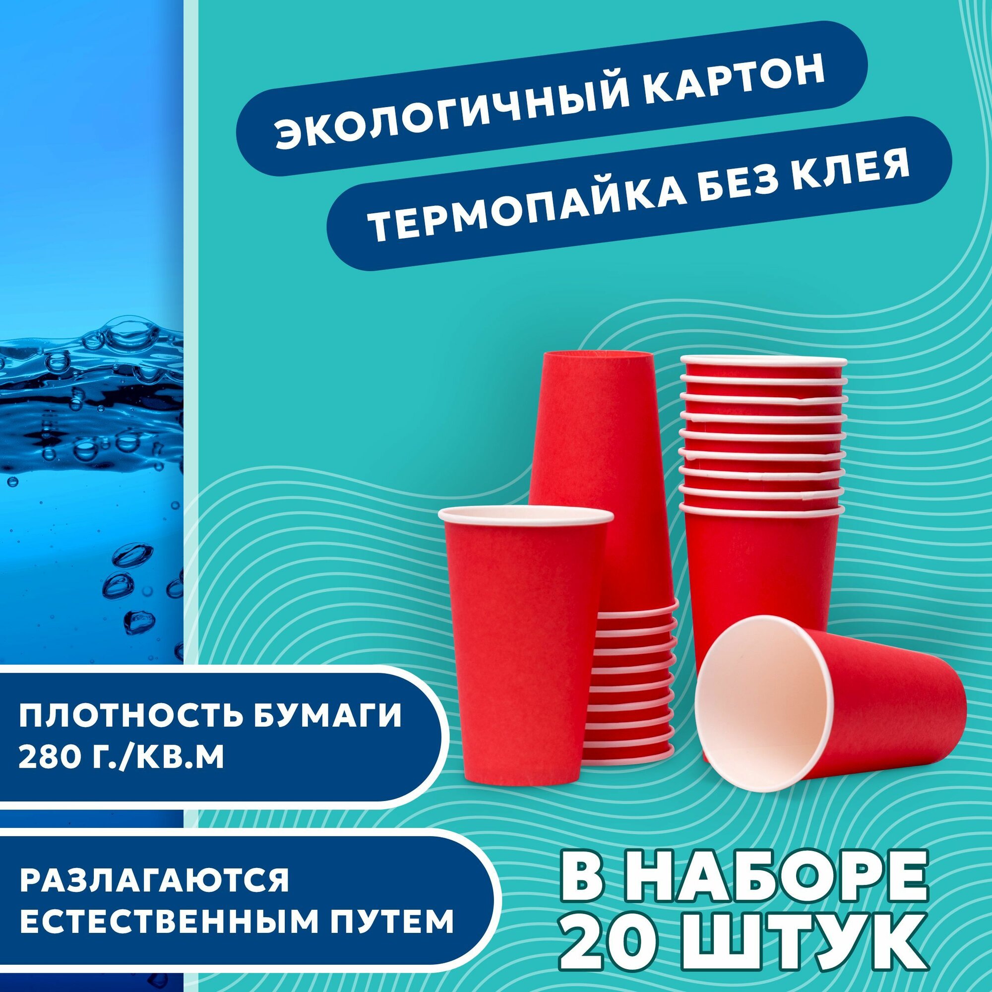 СохранитьНабор одноразовых стаканов гриникс, объем 450 мл 20 шт. красные, бумажные, однослойные, для кофе, чая, холодных и горячих напитков интересное: