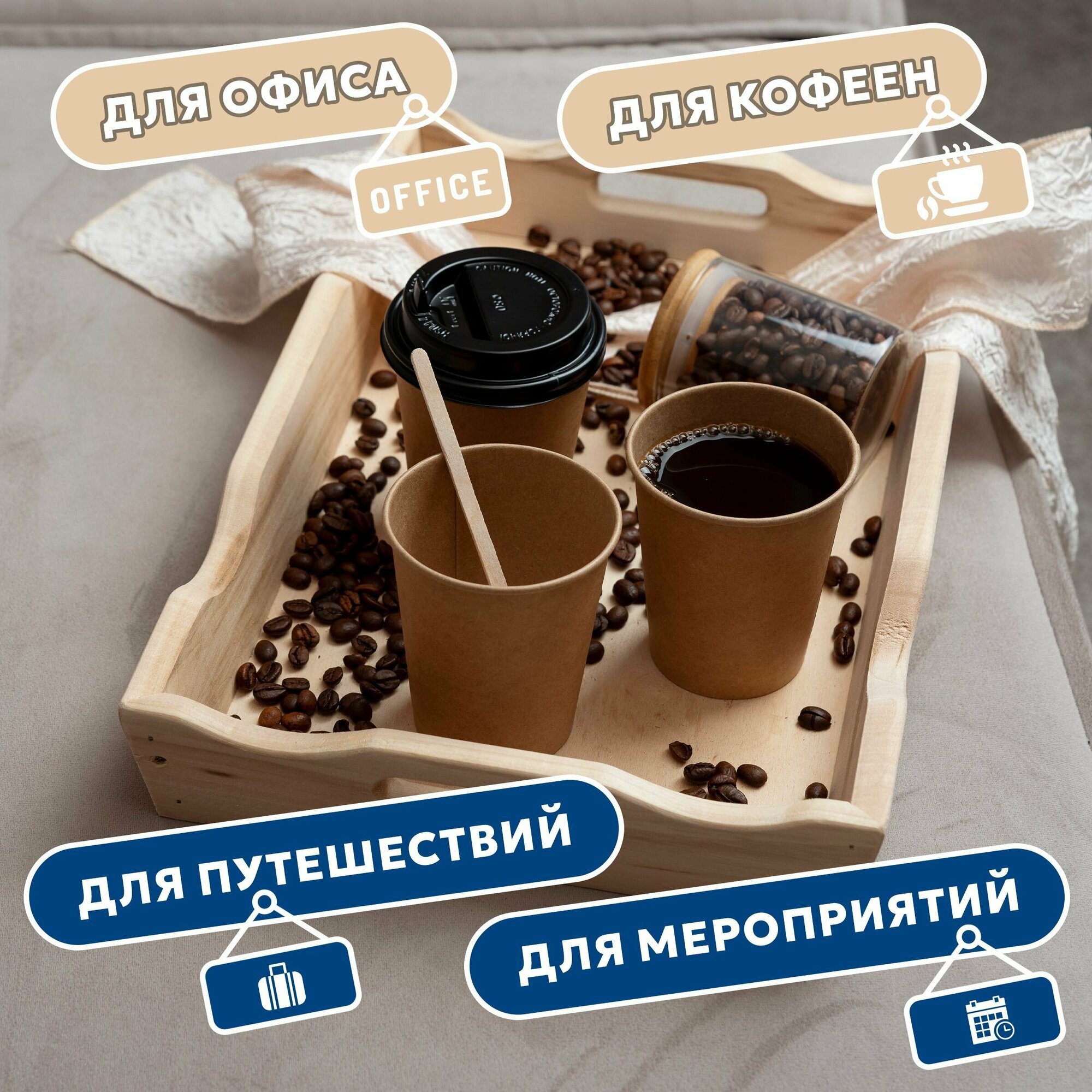 Набор одноразовых стаканов гриникс, объем 350 мл 50 шт. крафт, бумажные, однослойные, для кофе, чая, холодных и горячих напитков