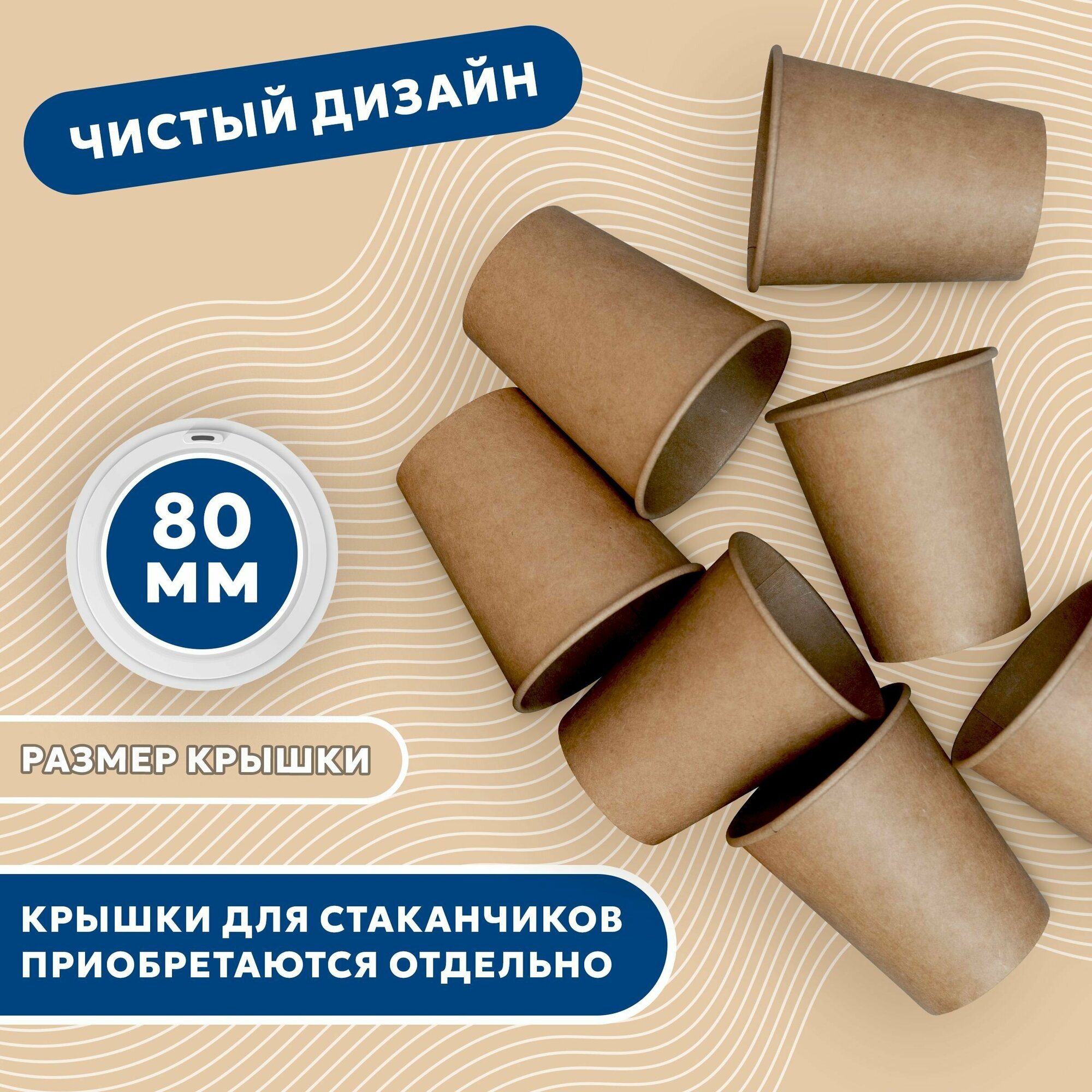Набор одноразовых стаканов гриникс, объем 250 мл 50 шт. крафт, бумажные, однослойные, для кофе, чая, холодных и горячих напитков