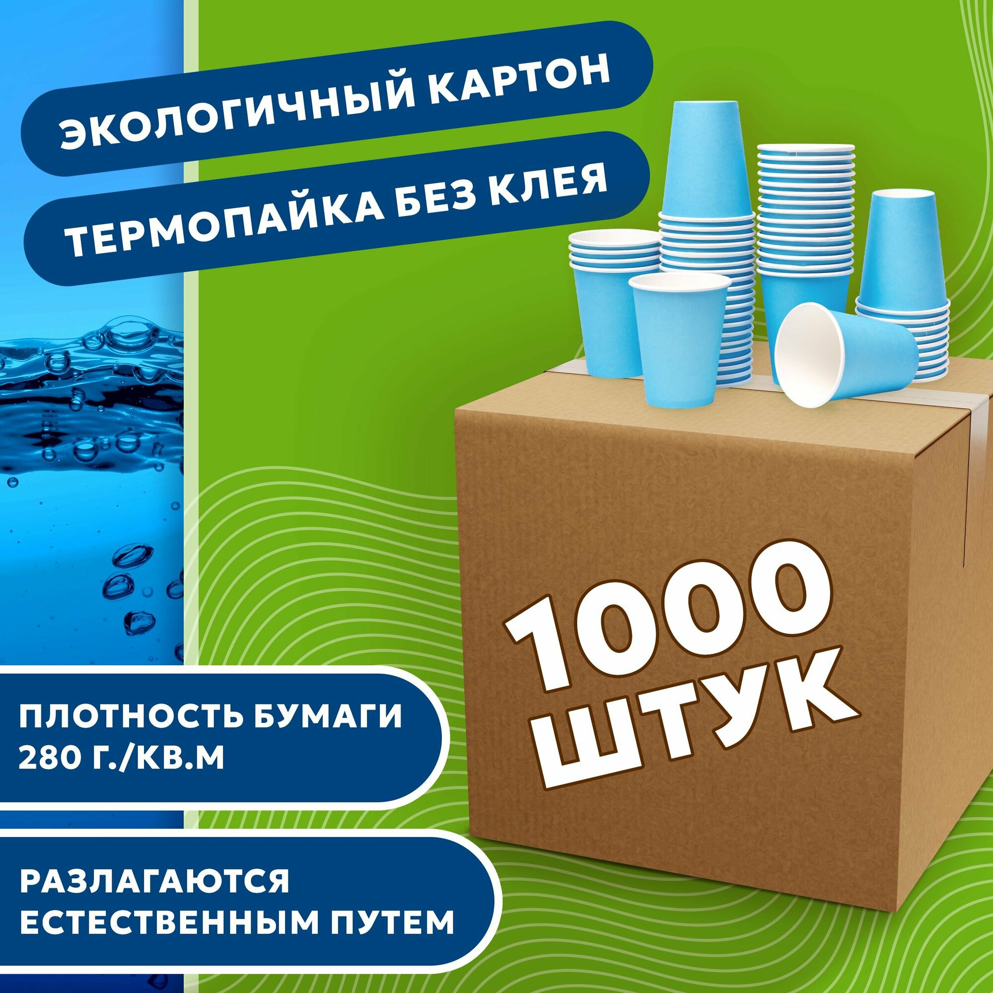 Купить Набор одноразовых стаканов гриникс, объем 350 мл 1000 шт. синие, бумажные, однослойные, для кофе, чая, холодных и горячих напитков