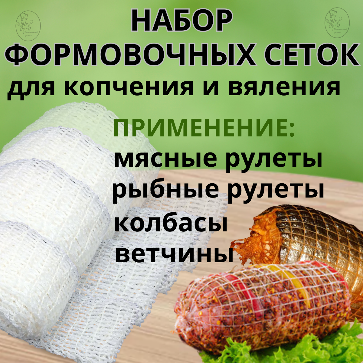 | Комплектация | сетка 80мм-2м,125мм-2м,150мм-2м,220мм -2 м.пленка целлюлозная 2м, шпагат 5м - нитритная соль 100г. |