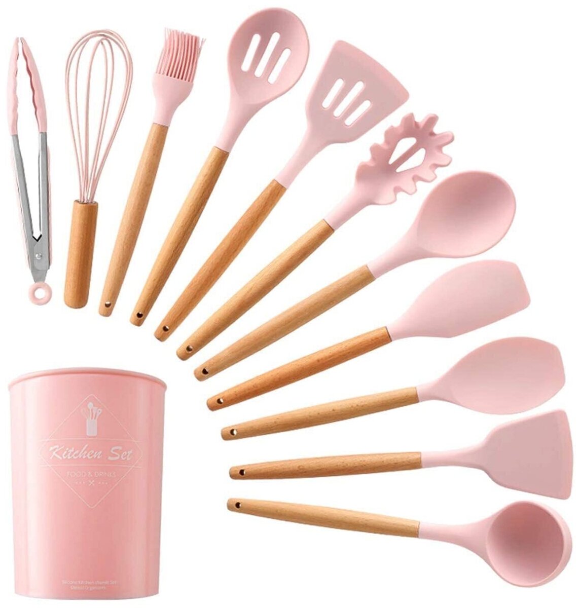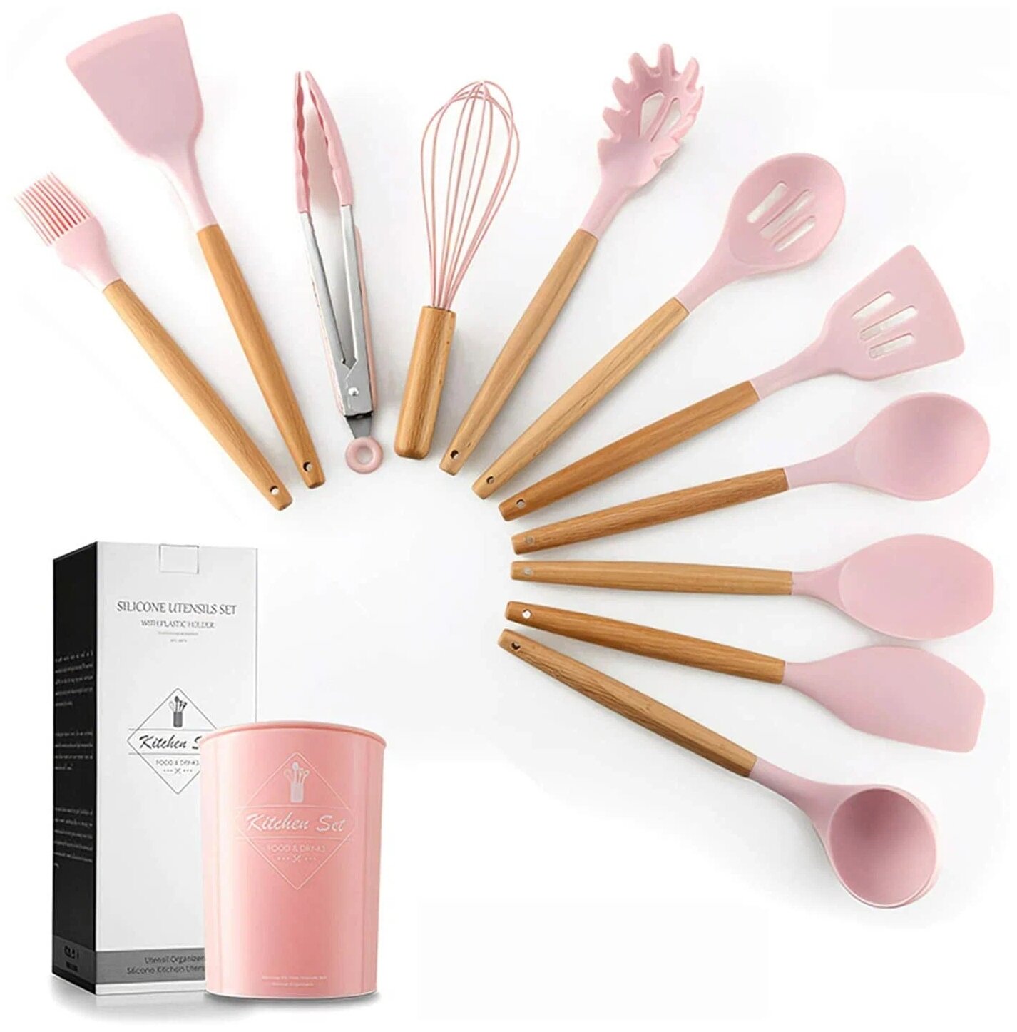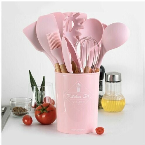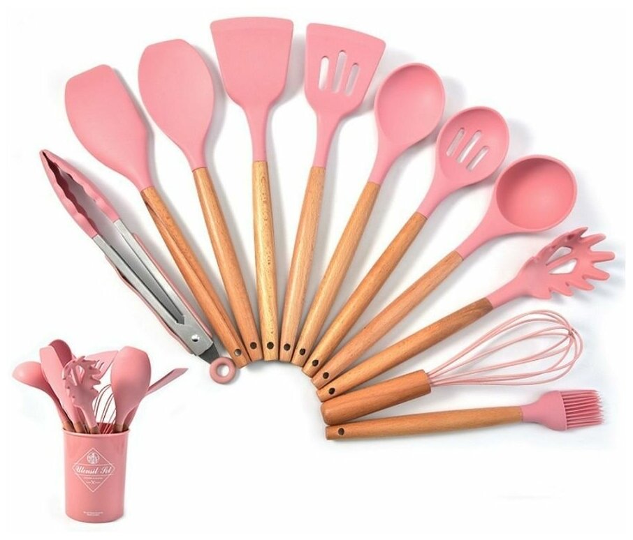 Купить Набор кухонных принадлежностей из бука и силикона, 12 предметов -Идеальный подарок, розовый