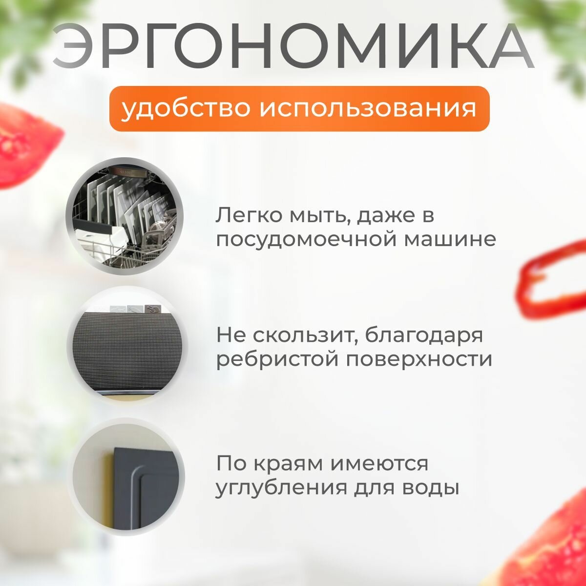 | Особенности | маркировка типа продуктов / мытье в посудомоечной машине / нескользящая |