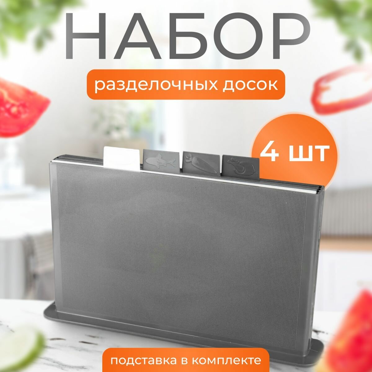 Ниже Вы можете прочитать отзывы на Набор из 4-х разделочных сервировочных пластиковых досок с маркерами на подставке для кухни, белый серый черный., ознакомится с подробными характеристиками, посмотреть интересные обзоры и фотографии на Набор из 4-х разделочных сервировочных пластиковых досок с маркерами на подставке для кухни, белый серый черный..