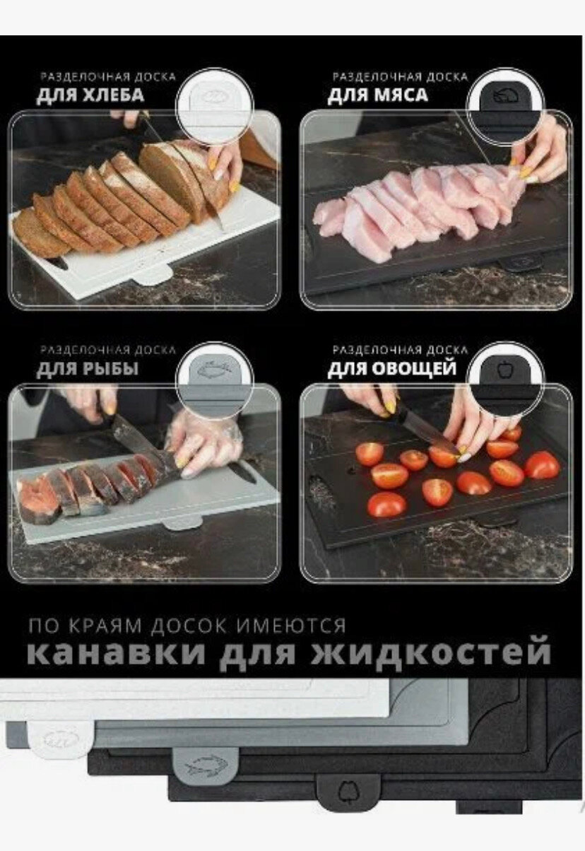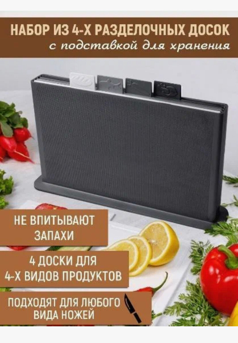 Набор разделочных досок 4 штуки, 32*20см, цвет черный, пластик, прямоугольные интересное: