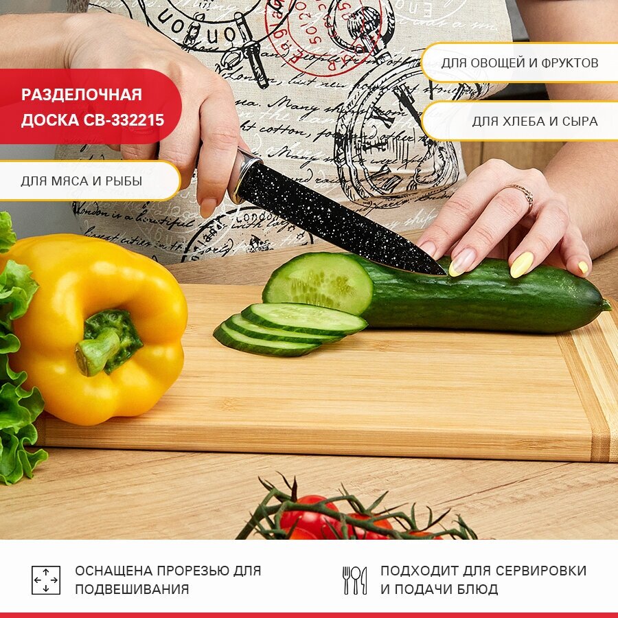 Доска разделочная деревянная Viatto CB-332215 для кухни, профессиональная для мяса, рыбы и сыра, бамбуковая сервировочная с ручкой 330х220 мм интересное: