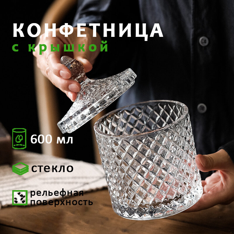 Сахарница конфетница Talo "Шпиль" стеклянная с фактурной поверхностью 600 мл, 10,5х18 см интересное: