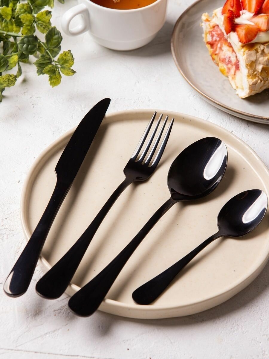 Набор столовых приборов 24 на 6 персон черный интересное: