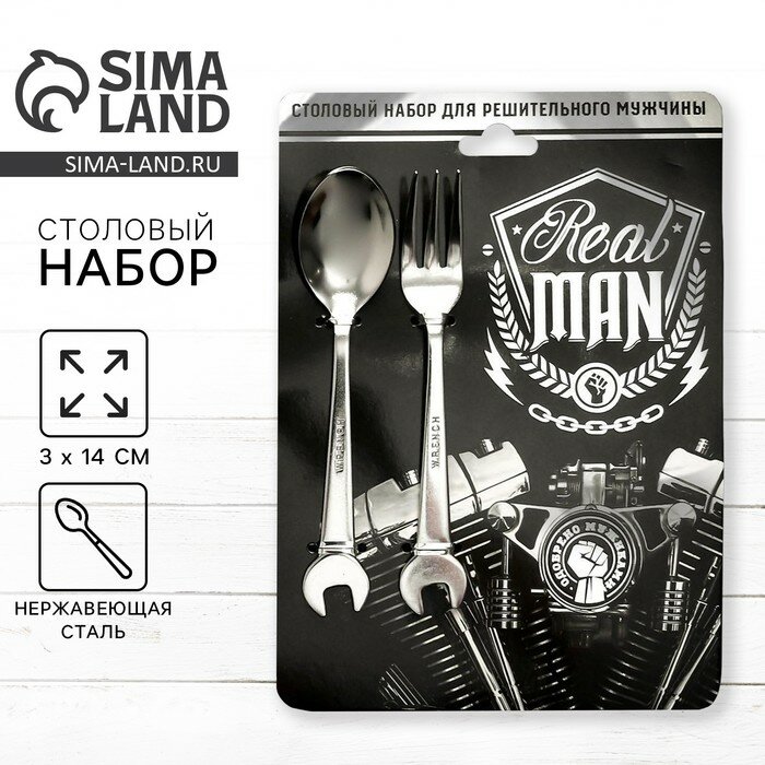 Набор ложка-гаечный ключ и вилка - гаечный ключ Real man, 19,8 х 14 см интересное: