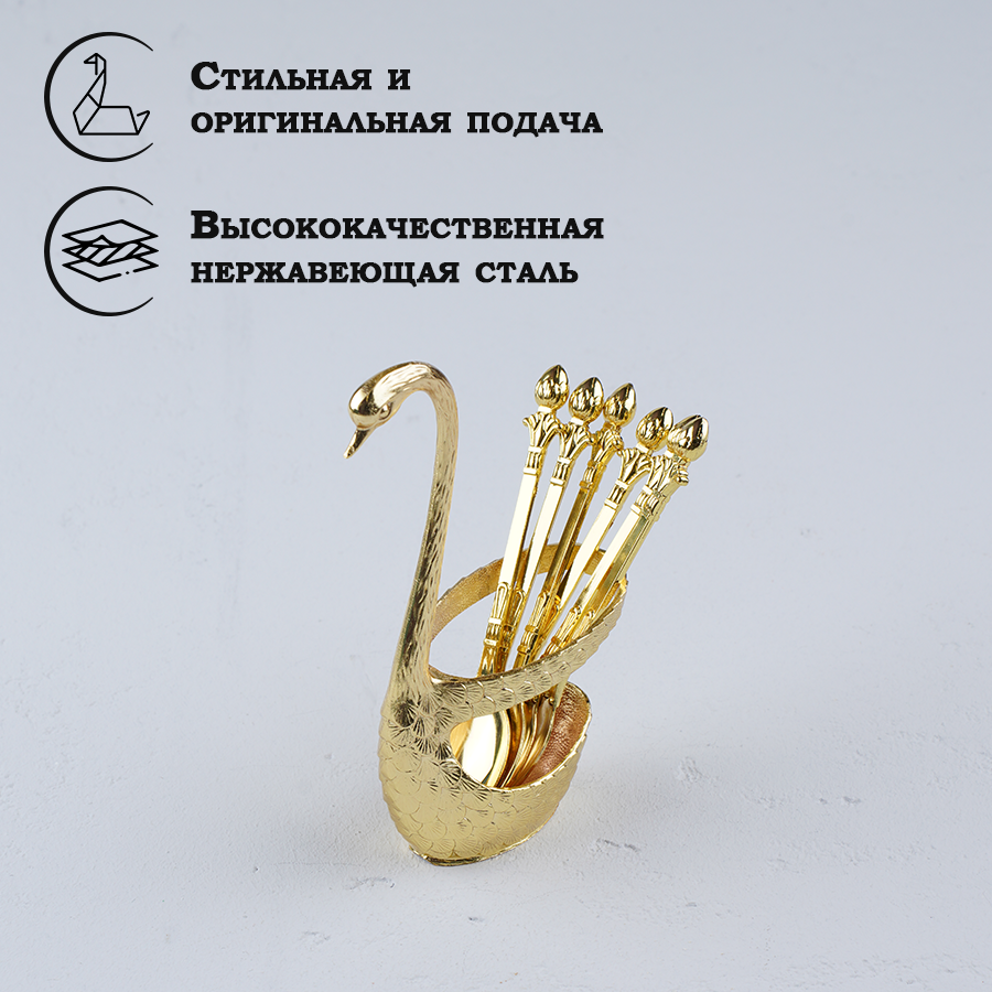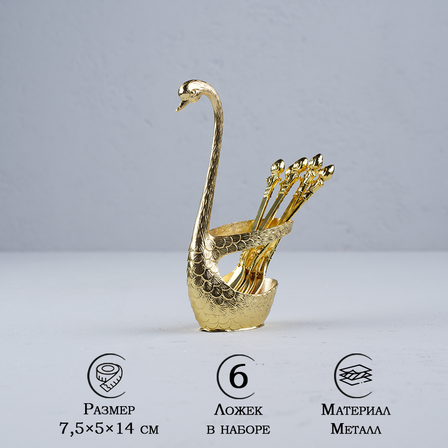 Набор ложек на подставке Magistro «Золотой лебедь», 7,5×5×14 см, цвет золотой интересное: