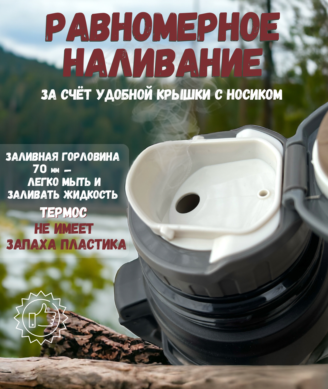 | Комплектация | термос с одной крышкой-кружкой (кружка из нержавейки с ручкой); ремешок для переноски через плечо на пластиковых быстро-съемных антабках |