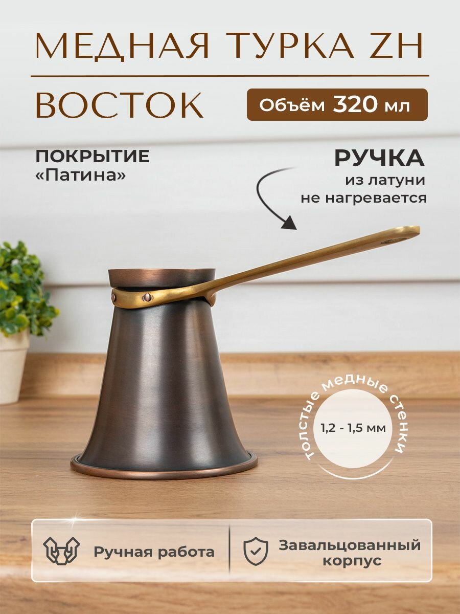 Турка ZH 320 мл медная для кофе Патина интересное: