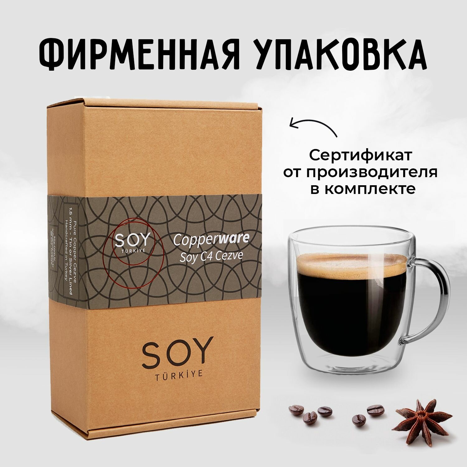 Турка для приготовления кофе SOY C3G 225мл, ручная работа интересное: