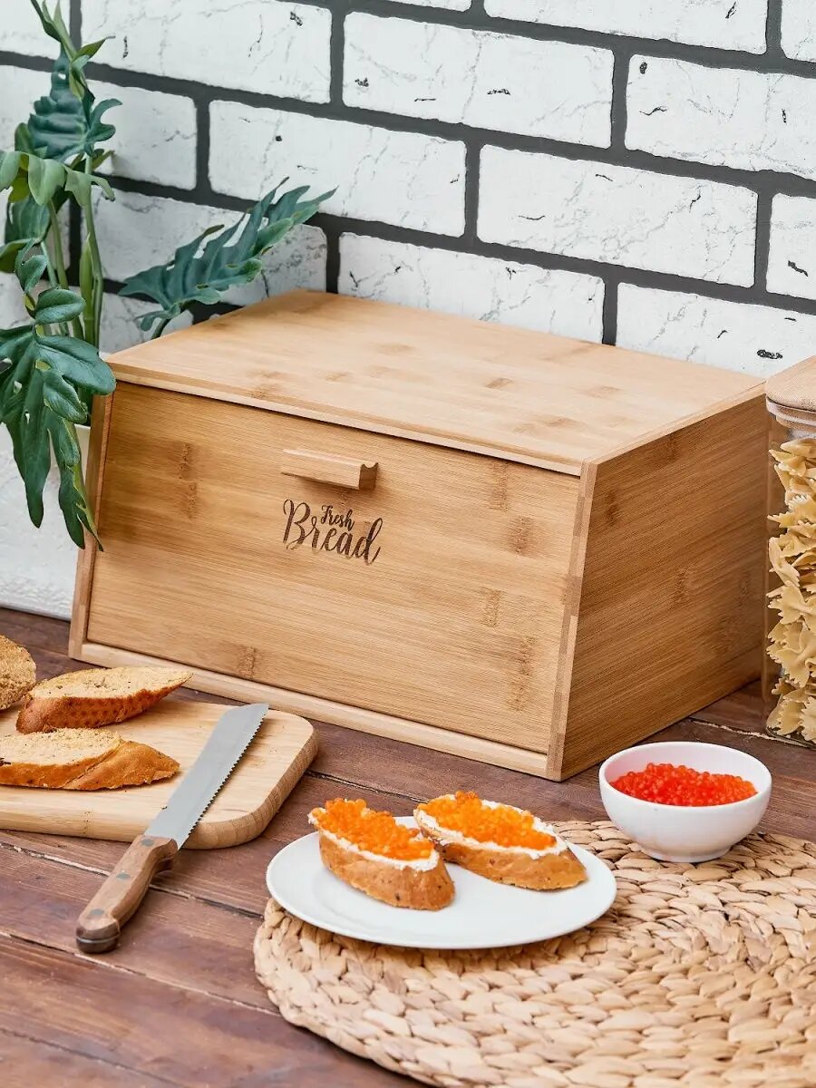 Хлебница настольная деревянная бамбук 35*21.5*15 см