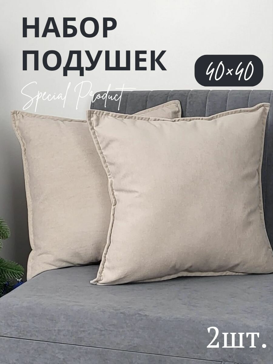 Подушки декоративные Vремя shop 40*40 бежевые, бежевый лайт 2шт