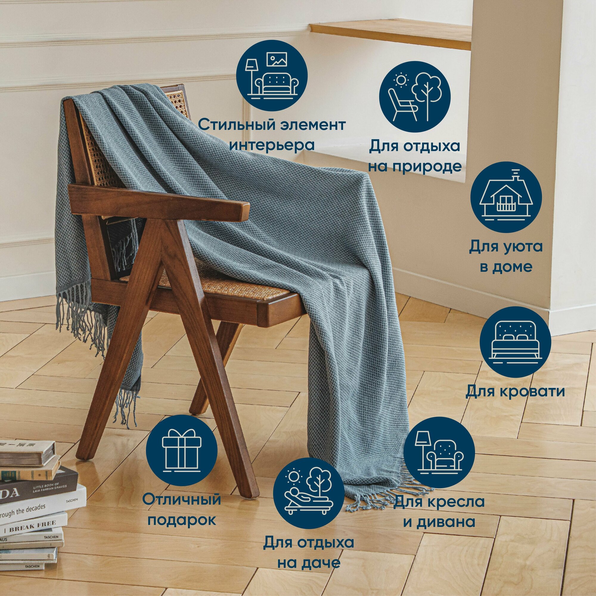 PROVANCE Плед жаккардной вязки, акрил, 130х170см, синий интересное:
