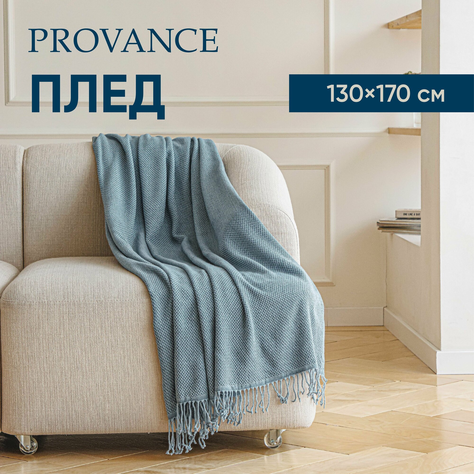 Купить PROVANCE Плед жаккардной вязки, акрил, 130х170см, синий