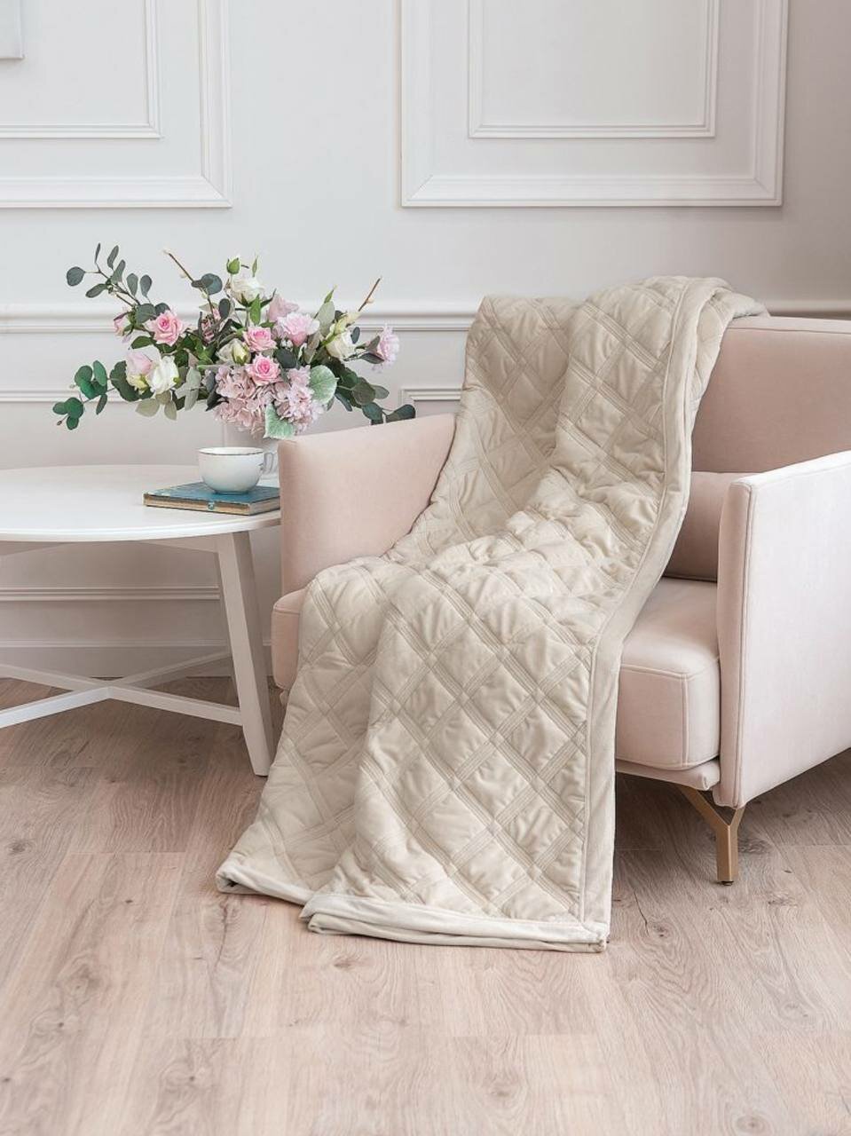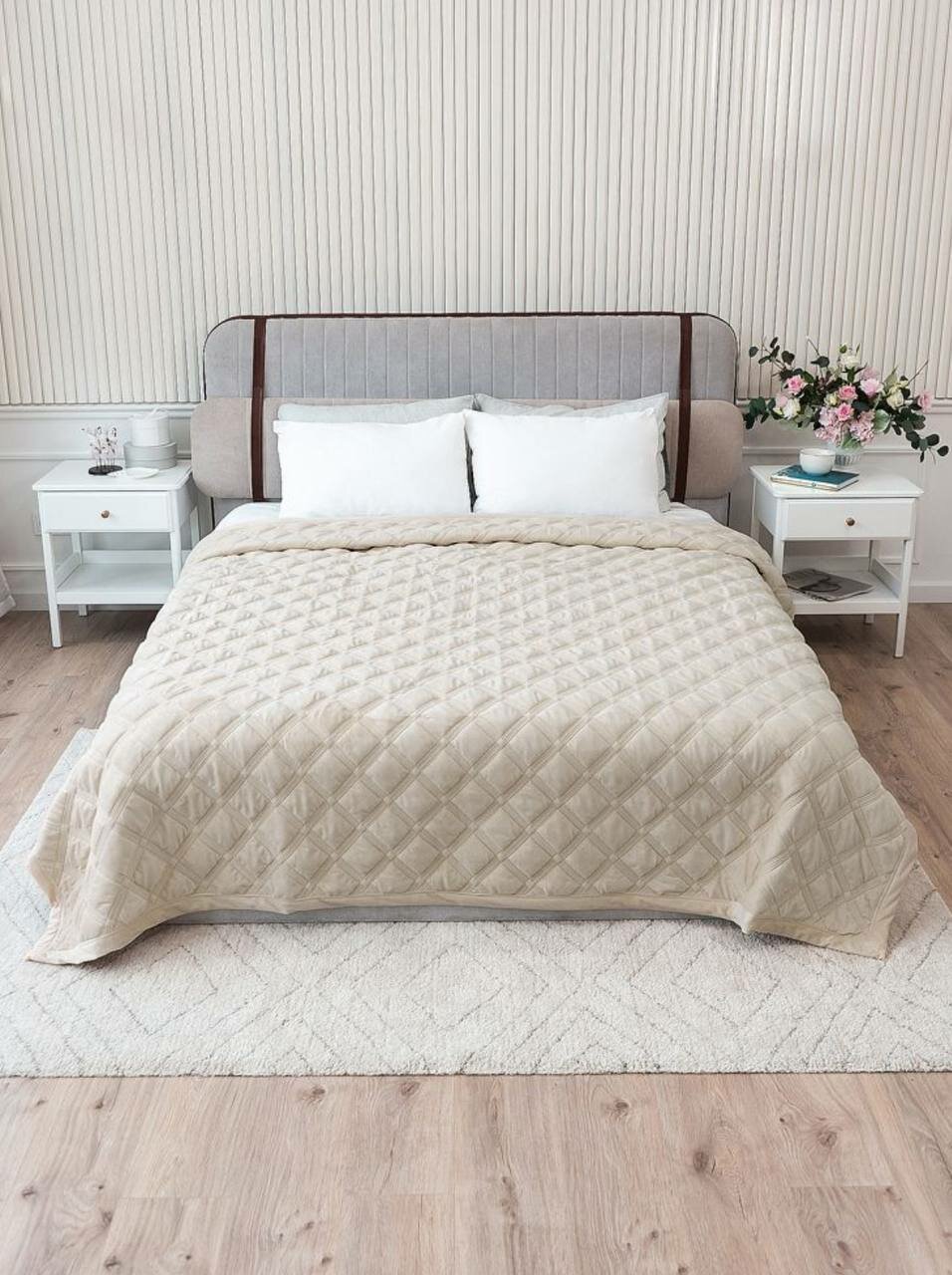 Велюровое покрывало Евро 220 х 240 см, светло-бежевый интересное: