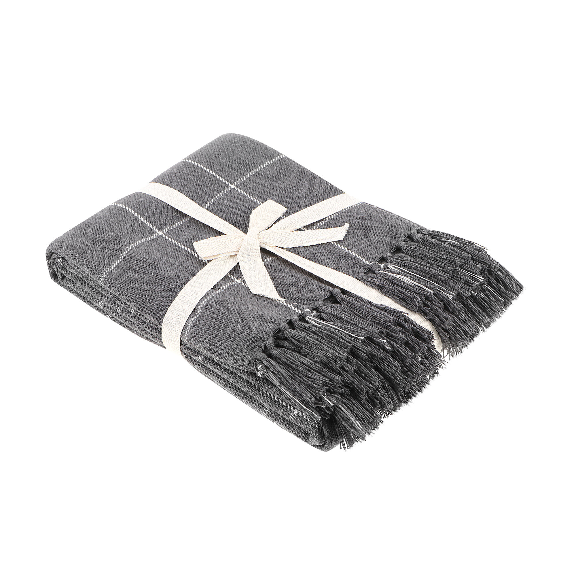 Плед Homelines textiles drill check 140x200cm dark grey, пледы и покрывала