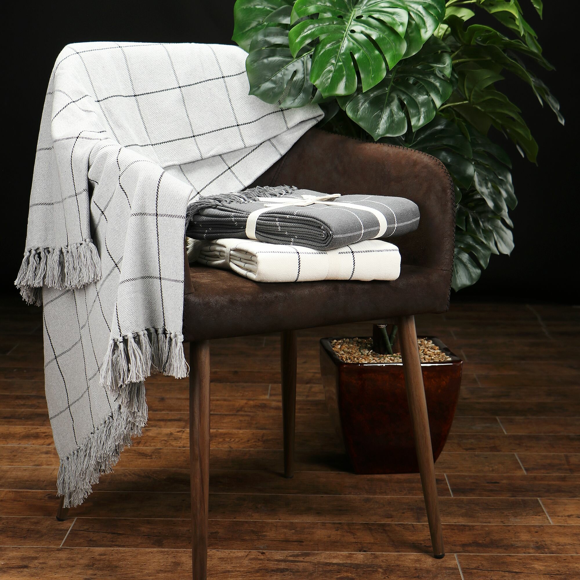 Плед Homelines textiles drill check 140x200cm dark grey, пледы и покрывала