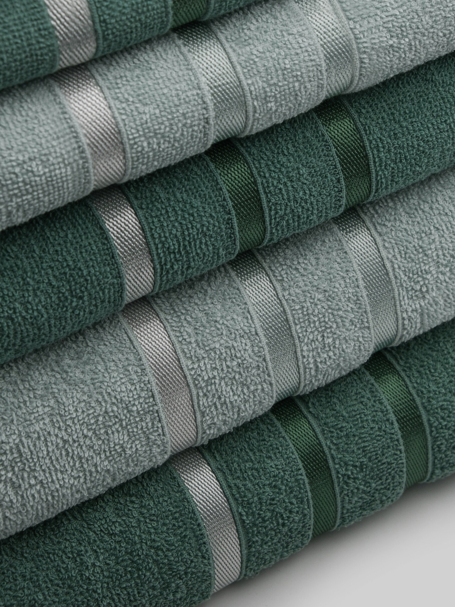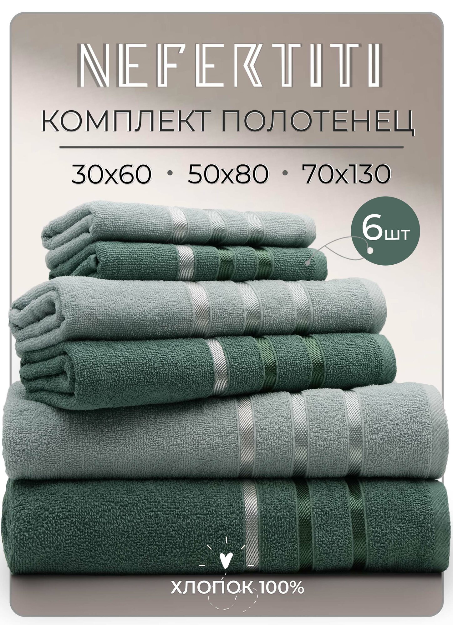 Полотенца махровые "Аквамарин", 6 штук, 30x60 см, 50x80 см, 70x130см, цвет изумруд/бежевый