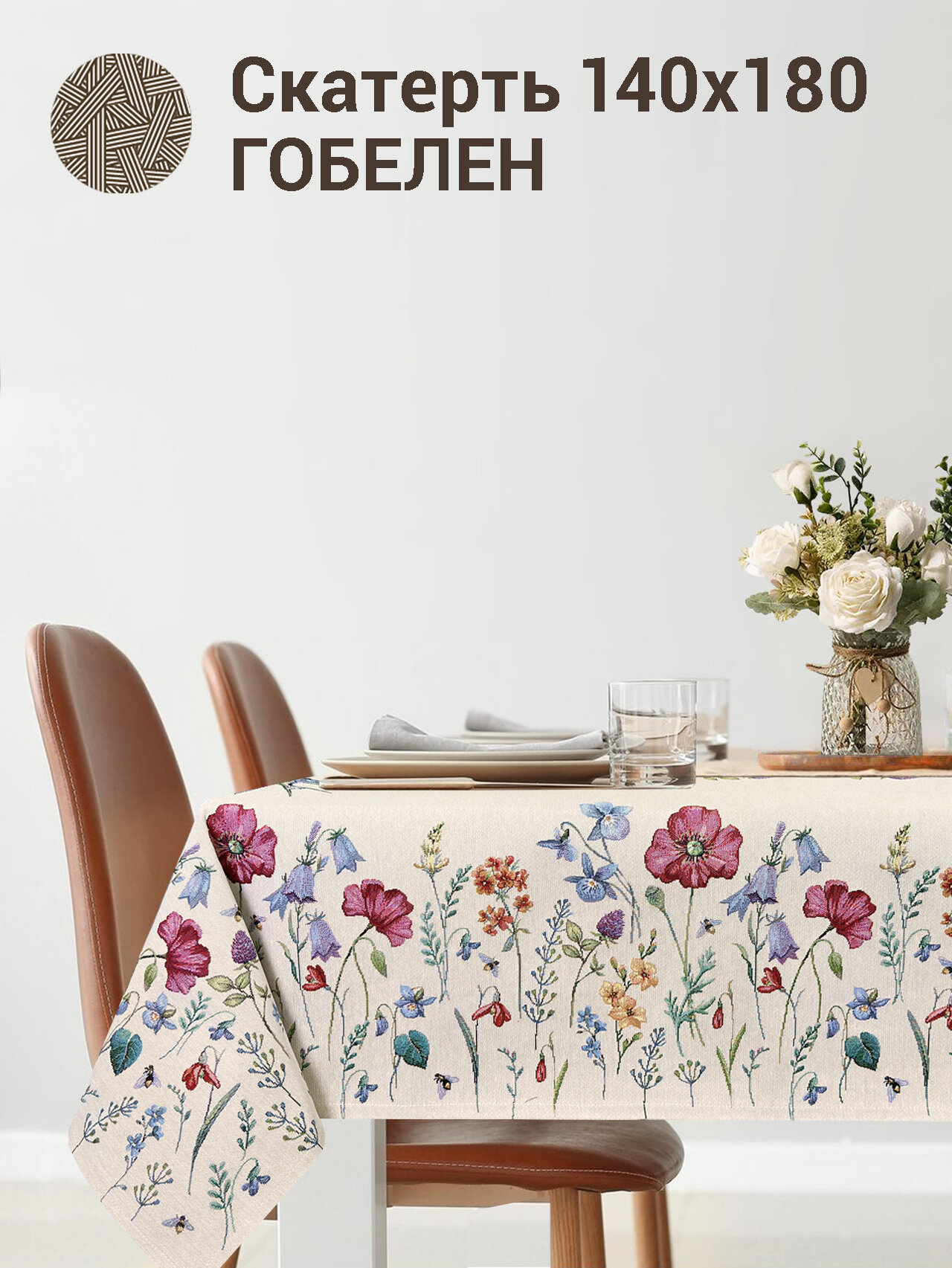 Скатерть прямоугольная принт лен 5075.17