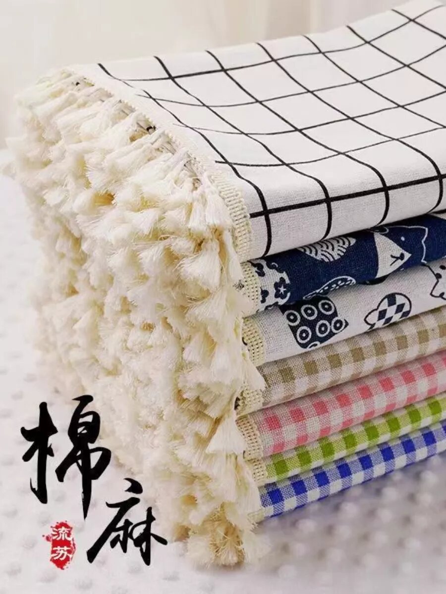 Скатерть с кисточками из хлопка и льна в стиле клетка 150 см интересное: