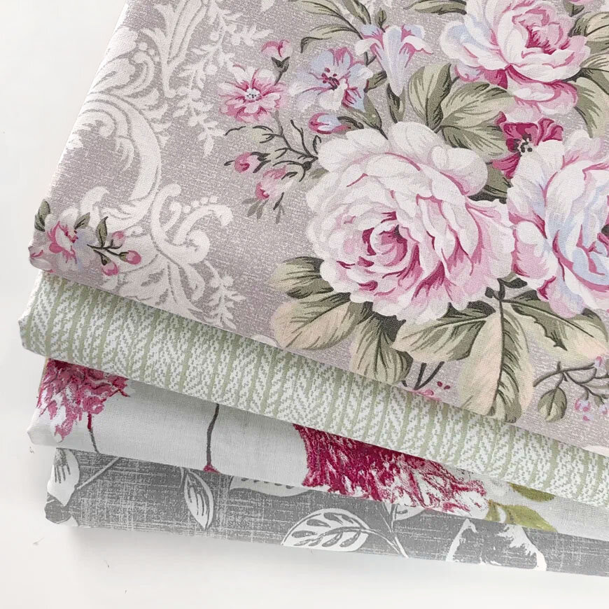 СохранитьТкань для шитья, рукоделия, 100% хлопок поплин Турция, набор тканей для пэчворка винтаж серо-розовый , 4 отреза 50 х 60 см интересное: