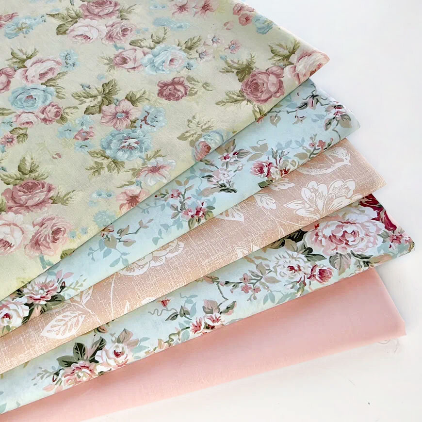 Ткань для шитья, рукоделия, 100% хлопок поплин Турция, набор тканей для пэчворка в стиле Прованс розовый, голубой, 5 отрезов 50 х 60 см