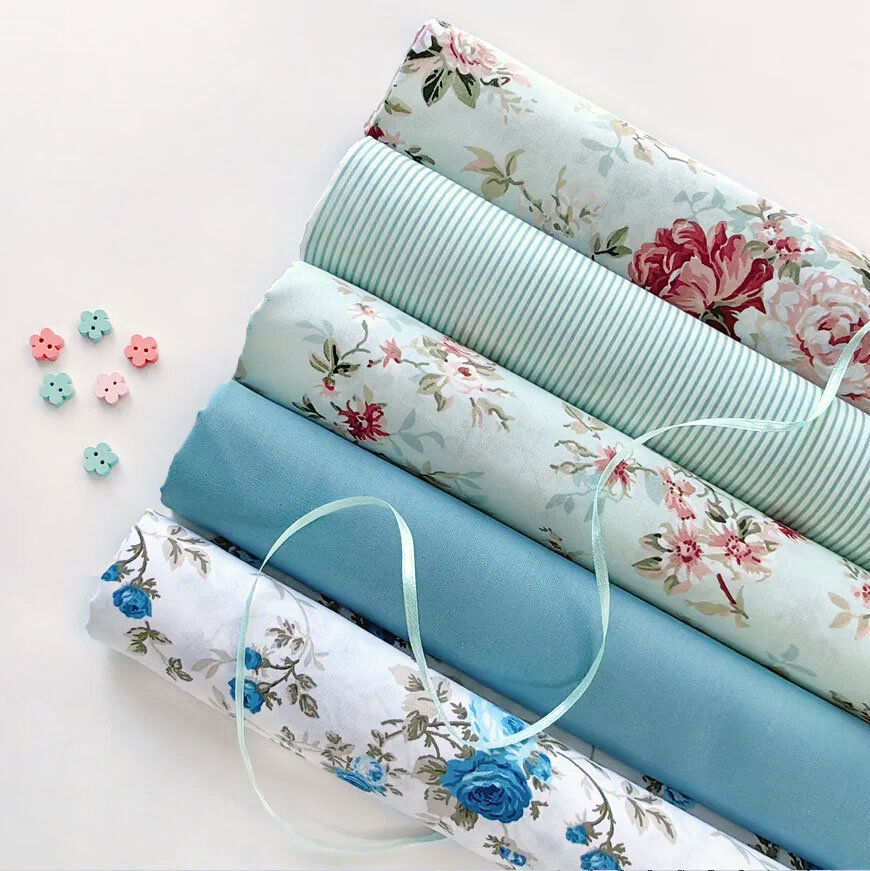 Ткань для шитья, рукоделия, 100% хлопок поплин Турция, набор тканей для пэчворка в стиле Прованс розовый, голубой, 5 отрезов 50 х 60 см