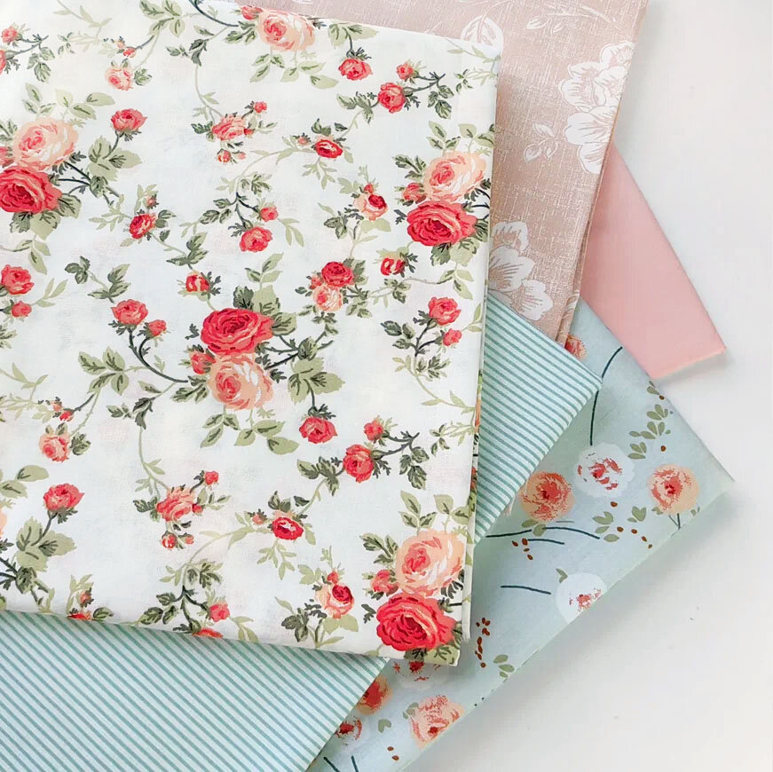 Ткань для шитья, рукоделия, 100% хлопок поплин Турция, набор тканей для пэчворка нежные розочки, 4 отреза 50 х 60 см