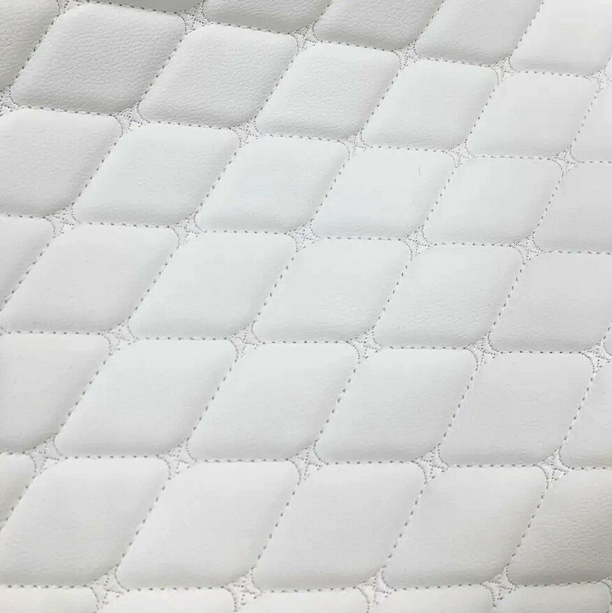 Стеганая экокожа белая Ромб бабочка с белой ниткой (140*100см) На поролоне для перетяжки салона авто, обивки мебели