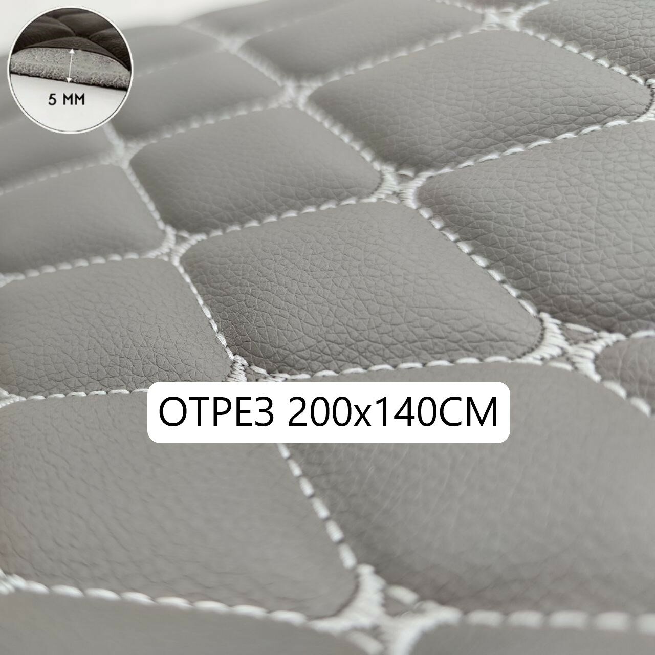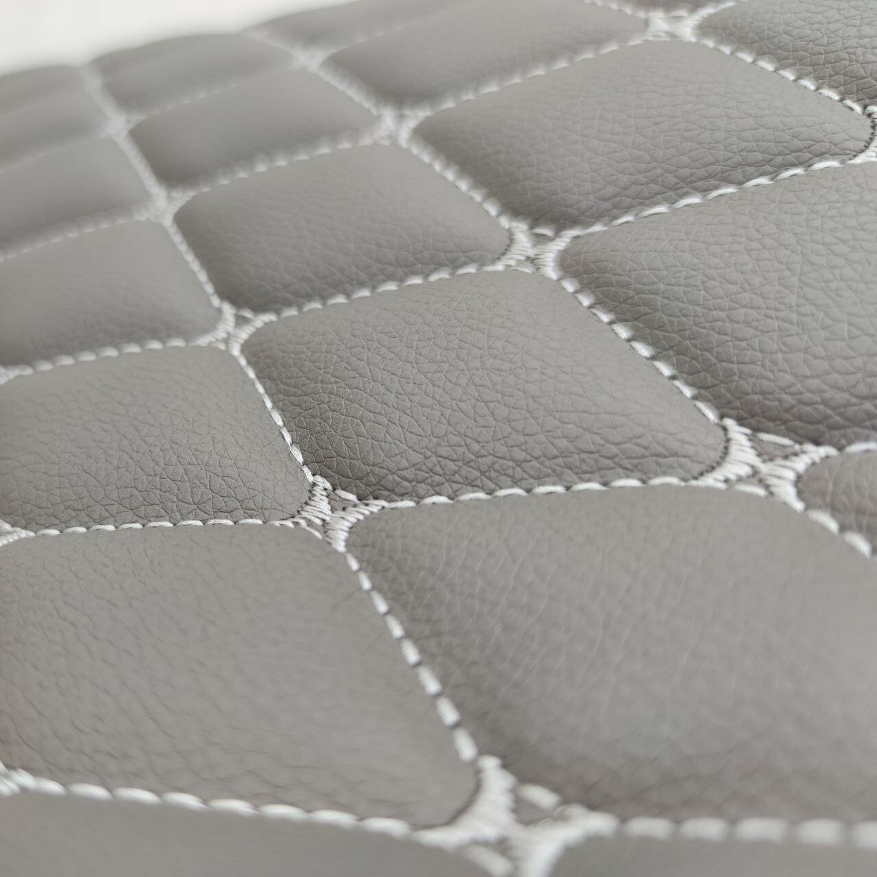 Стеганая экокожа ромб бабочка серая с серой ниткой (140*100см) кожзам стеганный, для перетяжки салона авто, мебели
