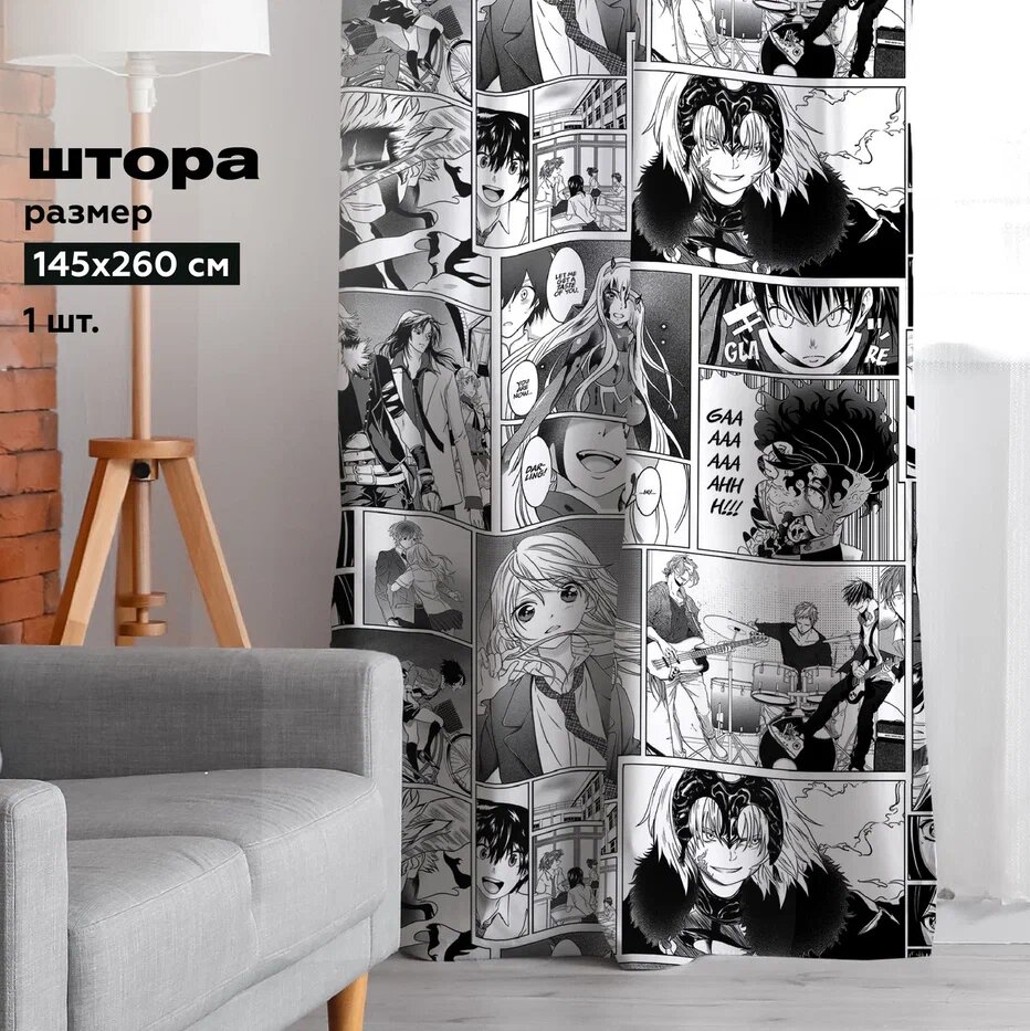 Штора рогожка 145х260 "Crazy Getup" рис 16619-1 Manga anime интересное:
