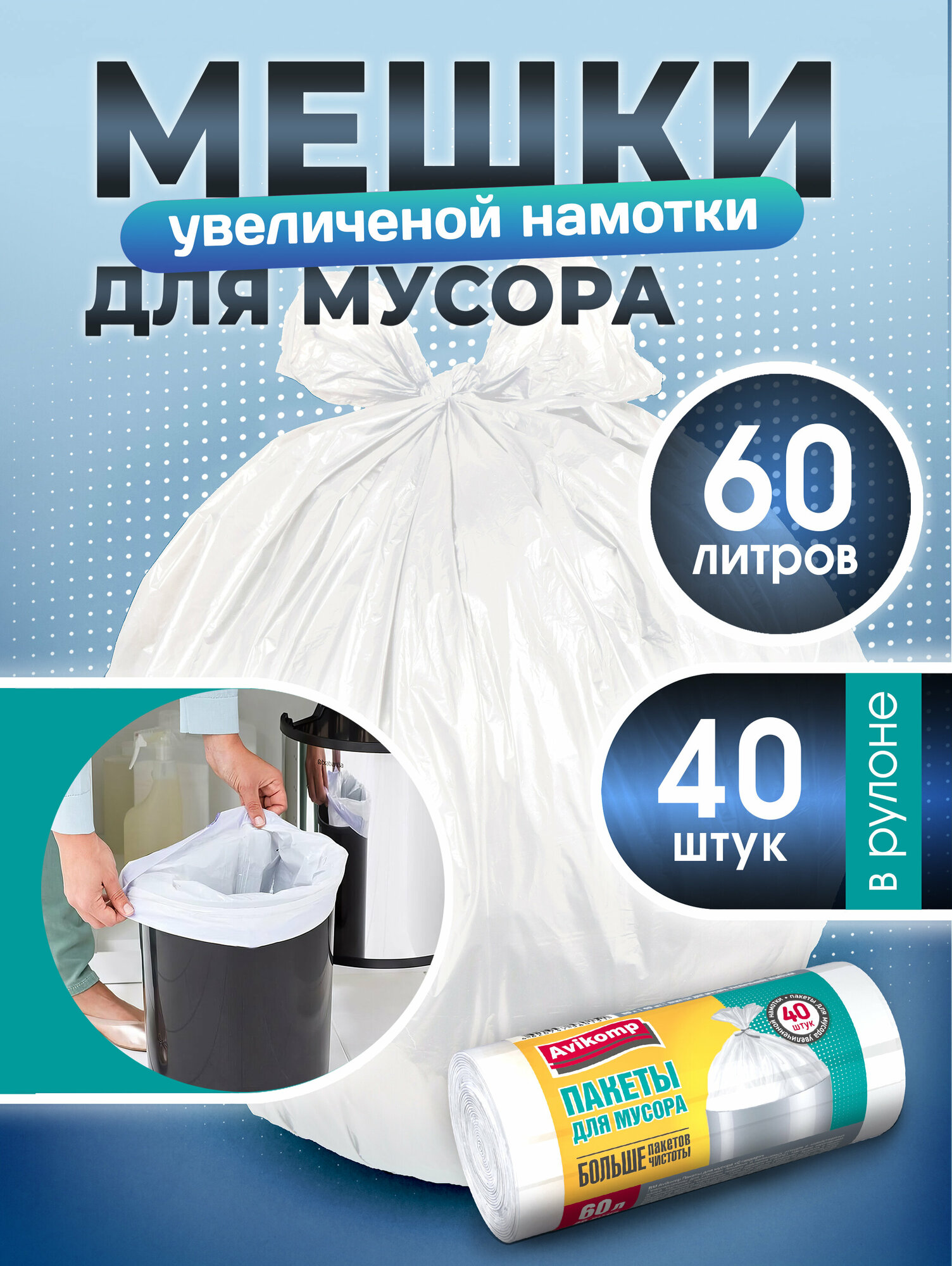 Мешки для мусора 60 л, 40 шт., Avikomp, белый интересное: