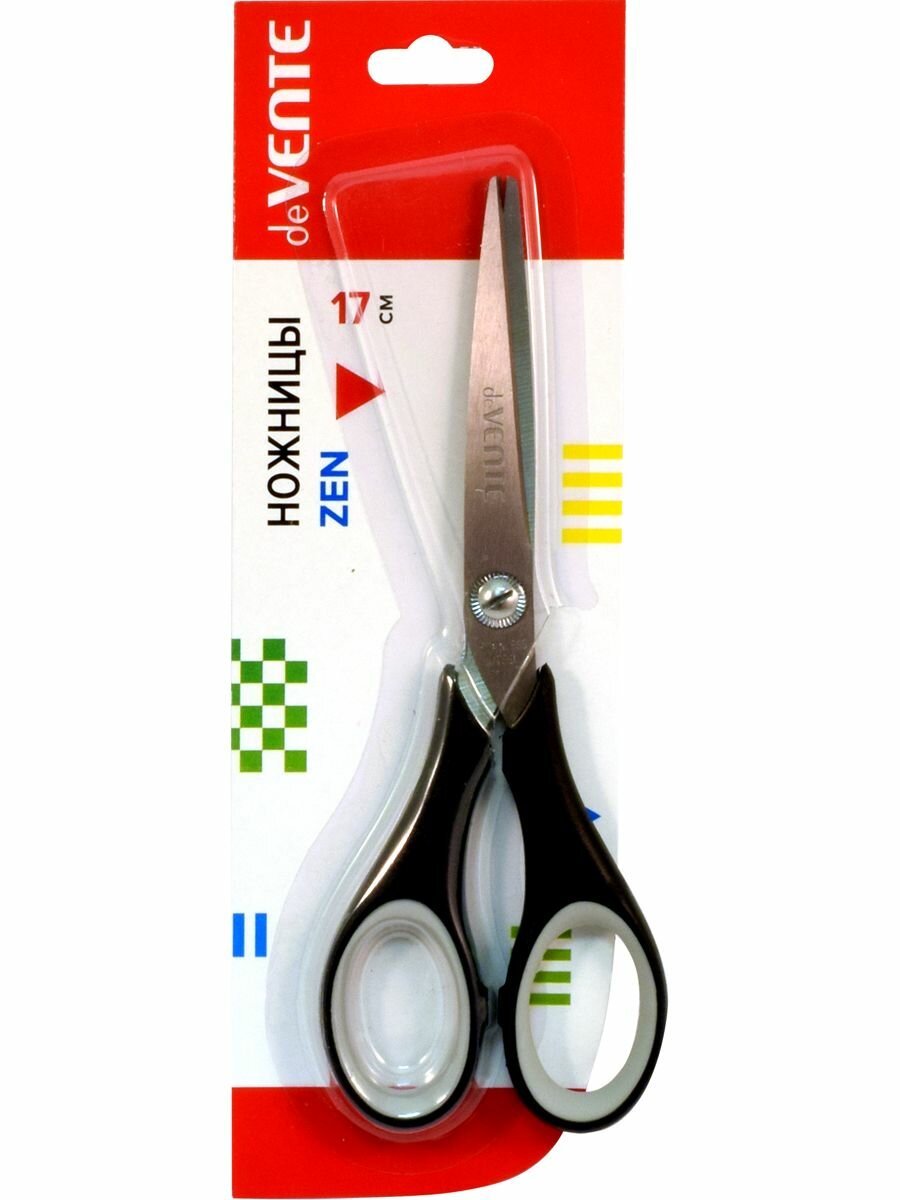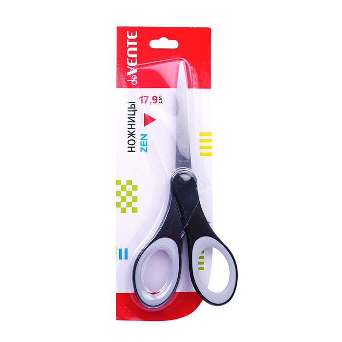 Купить Ножницы deVENTE "Zen", канцелярские, 17 см, двухцветные прорезиненные кольца, в блистере