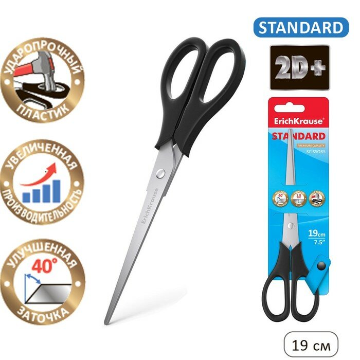 Купить Ножницы Erich Krause "Standard", 190 мм, черные (21881)