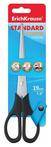 Ножницы детские Erich Krause "Standard", 190 мм, черные, в картонной упаковке с европодвесом, 21881
