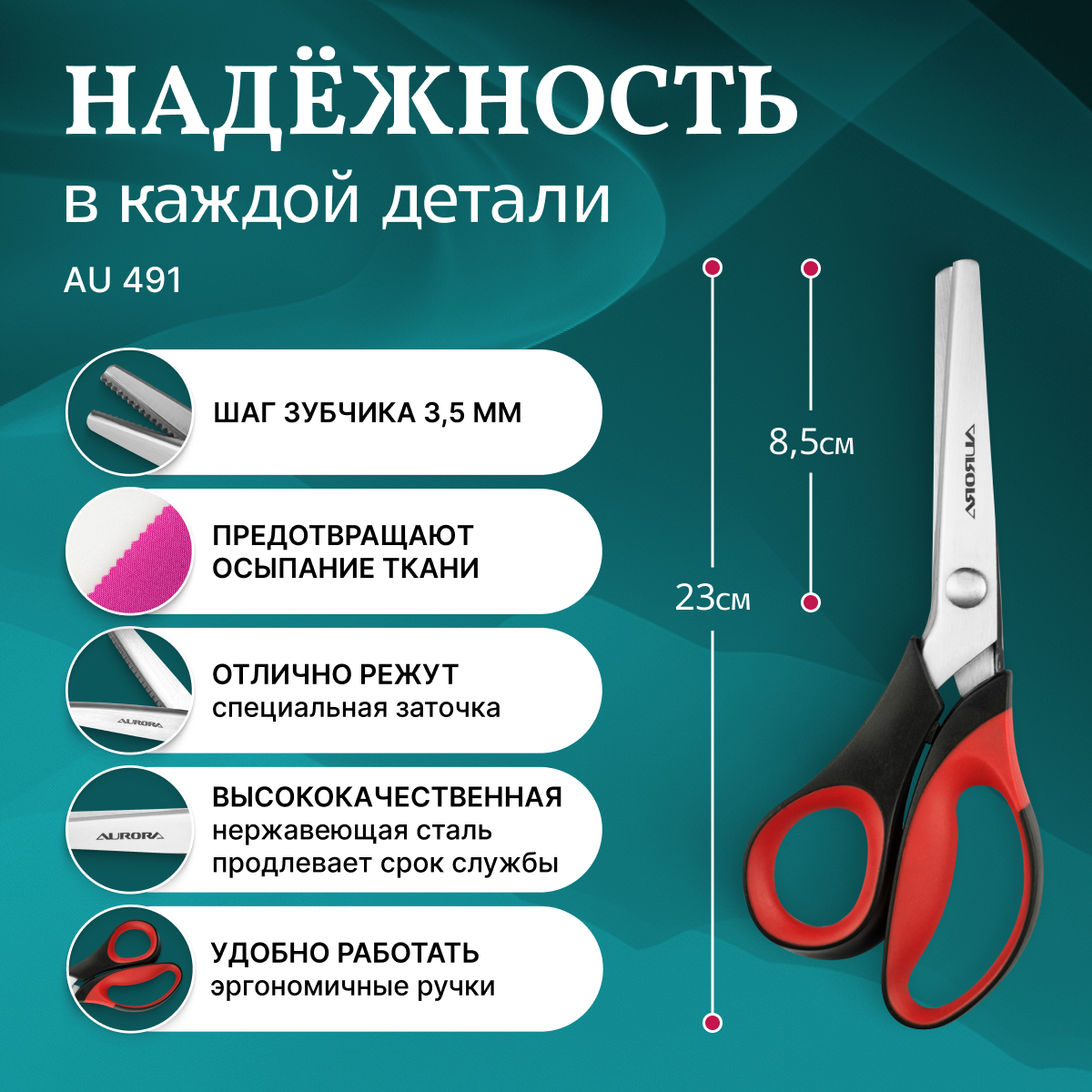 AU 491 Ножницы Aurora Зиг-заг, 23 см, шаг зубчика 3,5 мм интересное: