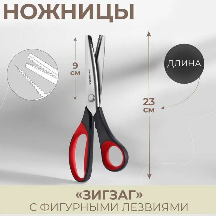 Ножницы Зигзаг, 23 см, шаг - 3,5 мм, цвет красный/чёрный Aurora 2598073 .