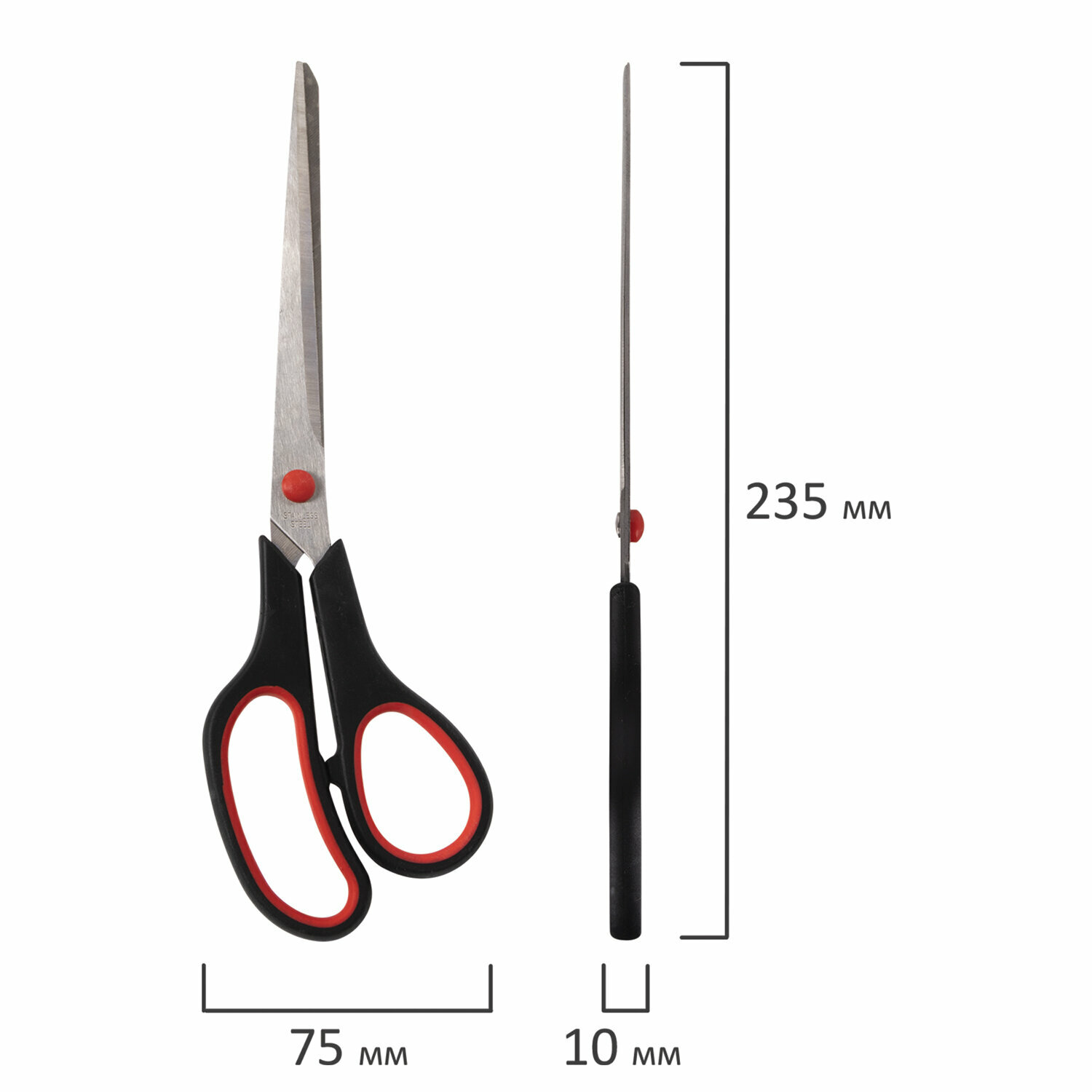 Купить Ножницы STAFF EVERYDAY, 235 мм, бюджет, резиновые вставки, черно-красные, ПВХ чехол, 237501, 2шт в компл.