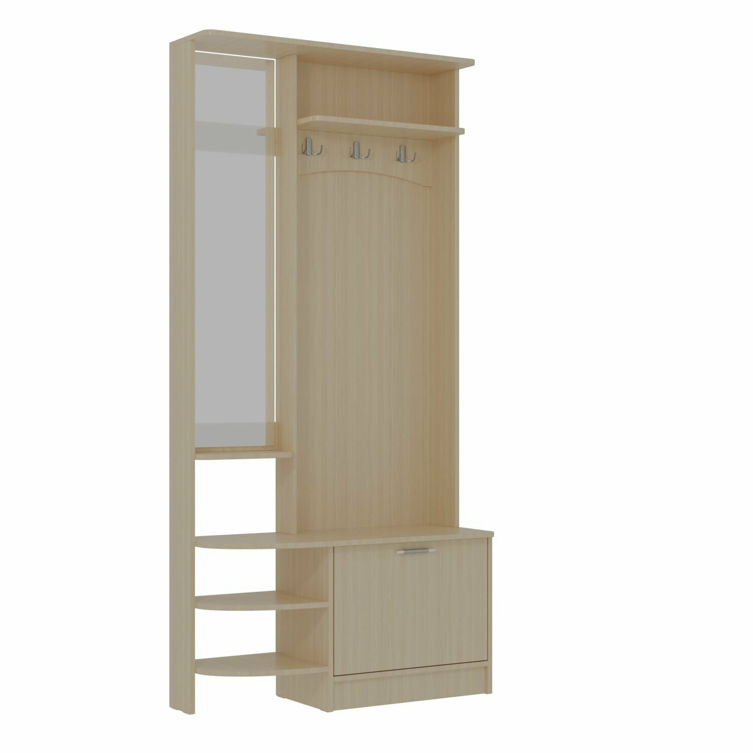 Прихожая комплект САША-13 от Фант-Мебель, с зеркалом, с обувницей, шкафом и ящиками, 96x200,5x36,2 см. Млечный дуб интересное: