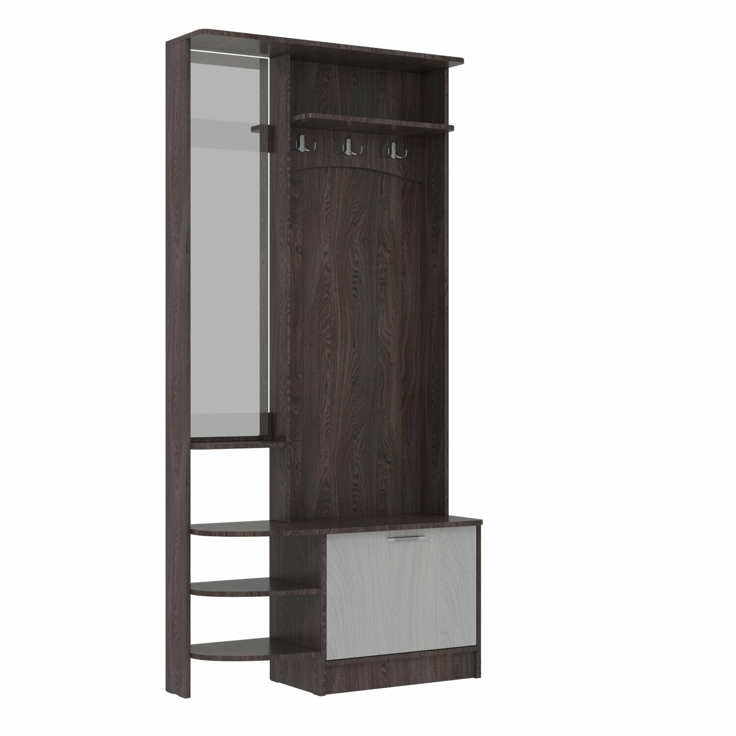 Купить Прихожая комплект САША-13 от Фант-Мебель, с зеркалом, с обувницей, шкафом и ящиками, 96x200,5x36,2 см. Ясень темный/Ясень светлый