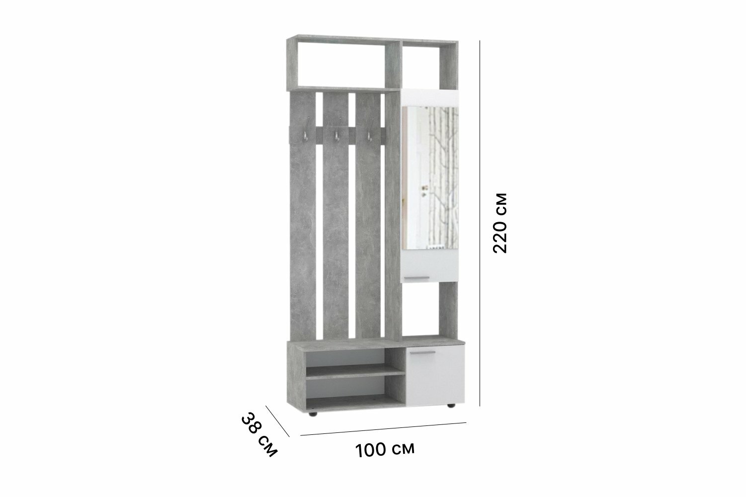 Прихожая Hoff Милан, 100х220х38 см, цвет ателье светлое интересное:
